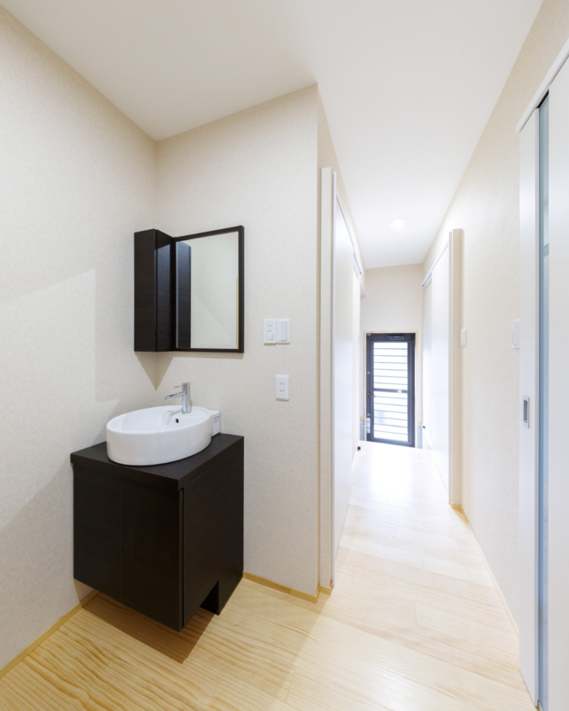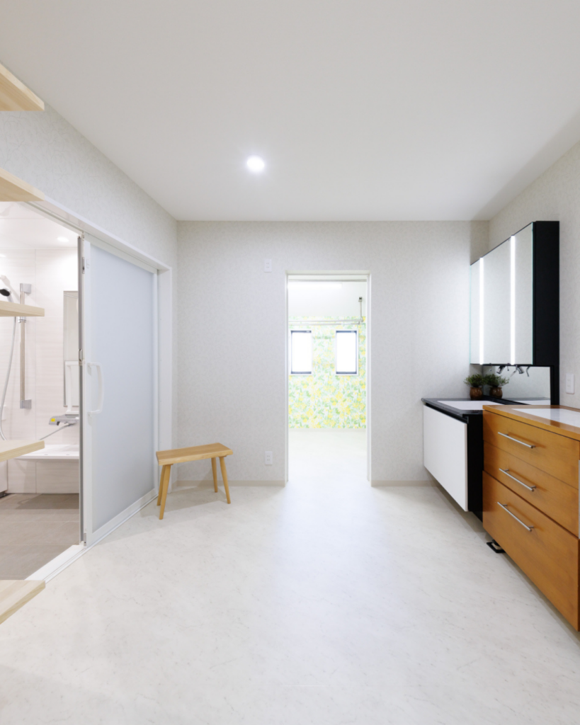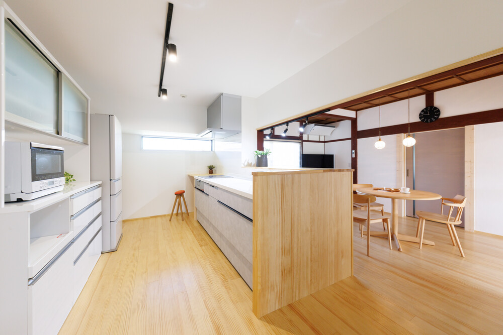 「古くなったから新しくする」のではなく、「時を経た美しさを引き出す」ことを大切にプランニングしました。今の暮らしにフィットするよう、水回りの使い勝手や家事動線(ランドリーや土間)をゼロから見直し。ダイニングまで続く開放的な空間づくりを意識し、お家を支える柱や壁もデザインの一部として丁寧に整えています。